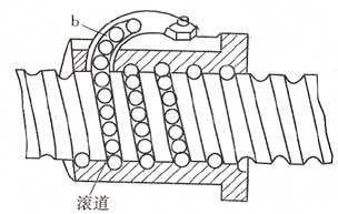 在絲桿和螺母上加工有弧行螺旋槽,當它們套裝在一起時便形成螺旋滾道,并在滾道內(nèi)裝滿滾珠。而滾珠則沿滾道滾動,并經(jīng)回珠管作周而復(fù)始的循環(huán)運動。回珠管兩端還起擋珠的作用,以防滾珠沿滾道掉出。