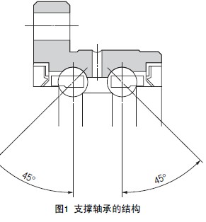 支承軸承由兩排接觸角為45° 的DB 型角接觸軸承組成, 來提供予壓。以往用于安裝皮帶輪的套環,現與螺母組合為一體(參照斷面A)