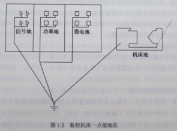????? 數控機床的接地采用一點接地法.即輻射接地法.如圖1-2所示。